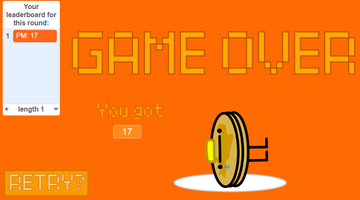 The game has a retry button (as in the original, you had to restart the game to play again, however this would mean you would have to close out of the game and reopen it every time you wanted to restart it, which is too big of a pain)